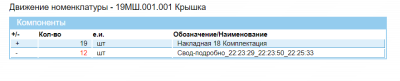 Красным цветом выводится число в документах со связью «Расход», а черным цветом «Приход». Это расшифровка текущего остатка на складе. Если кликнуть по строчке в этом режиме, то выводится соотсвествуюшая коллекция.
