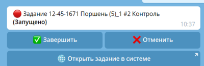 Нажатие на кнопку «Завершить» форммирует у задания завершенное выполнение. Индикатор становится зеленым. Кнопка «Отменить»Отменяет выполнение задания. Возвращает его в исходное положение.