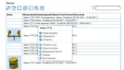 Отображение хода выполнения заказов с прогнозированием угрозы срыва.