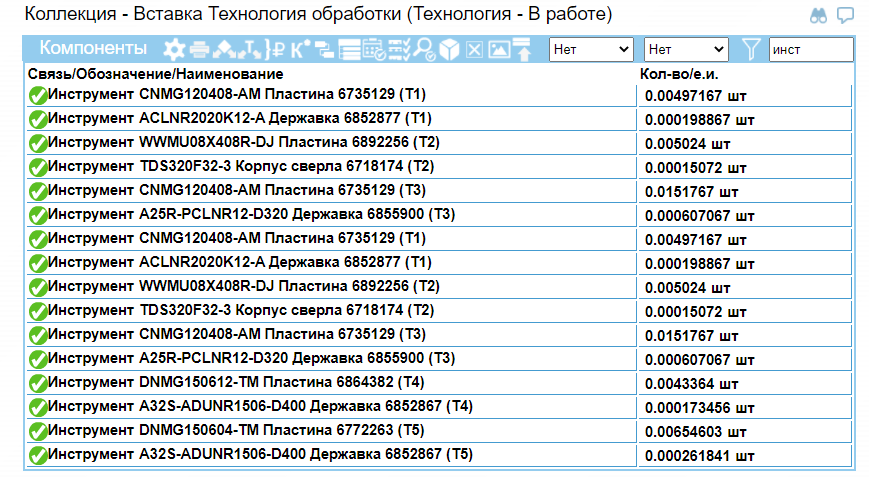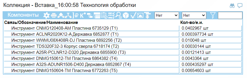 . Задается вопрос о суммровании количества в рамках единицы измерения. Если нужно то соглашаемся, и получаем список необходимого количества инструмента в отдельной коллекции.