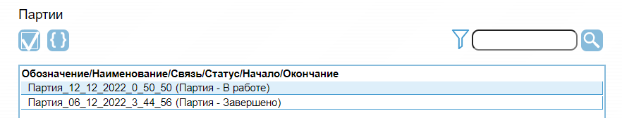 Партии Вывод списка производственных партий, выбор и работа с ними