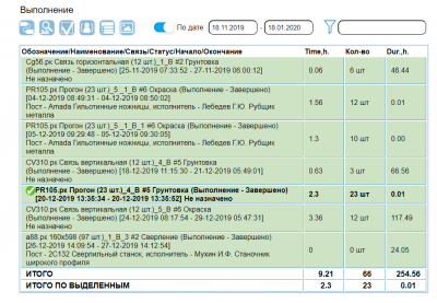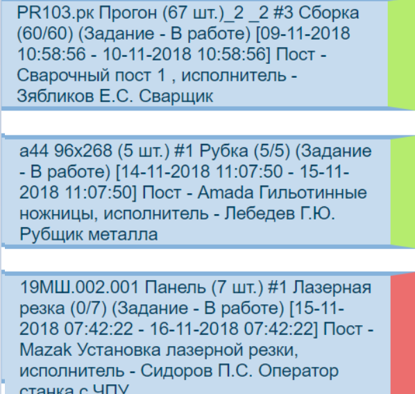 Задания Вывод текущих производственных заданий, отметка начала и окончания выполнения