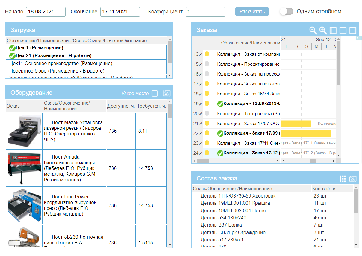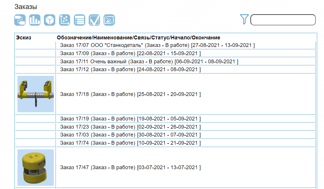Заказы здесь ведется список текущих заказов и проводится анализ хода их выполнения