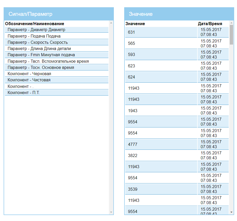 Мониторинг Вывод информации по парамтерам производственного оборудования и параметрах производственных процессов