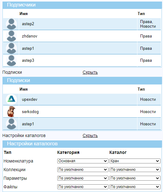 В «Настройка каталогов» назначаются категории и папки, в которые будут сохраняться вновь создаваемые объекты. По умолчанию это категория «Входящие».