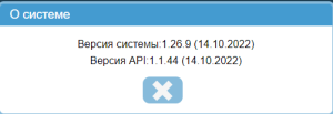 Кнопка «О Системе» выводит информацию о номере версии системы и API.