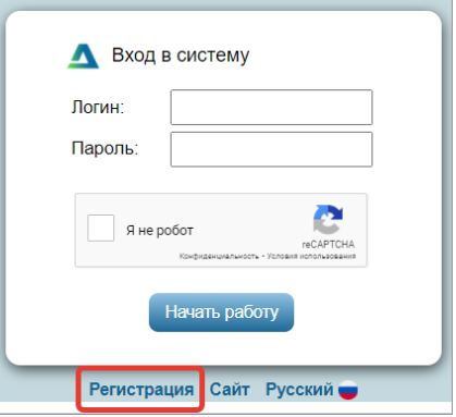 Для регистрации в системе нужно зайти на сайт и нажать на кнопку «Регистрация».