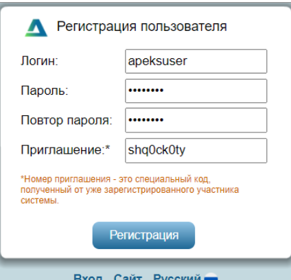 По ее нажатии будет выведено окно в котором нужно заполнить имя пользователя и дважды ввести пароль. Что важно - это нужно запомнить. Кроме того, потребуется код приглашения. Получить его можно у пользователя системы или на сайте.
