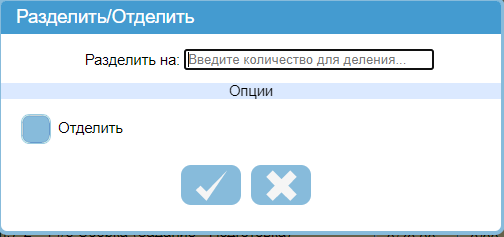 По умолчанию предлагается задание разделить на несколько отдельных патий. Например общее количесво в задании установлено 37 штук. В случае разделения если ввести количество 3, то будет сформировано три задания на с колчиеством 12,12 и 13 штук. В последнем задании количество выравнивается до общего. Если установлено 35 штук и указано, что нужно разделить на три, то будут сформированы три задания с количеством 12,12 и 11 штук. По нажатии на кнопку «Применить», будут сформировано заданное количество заданий, а исходное задание будет закрыто.