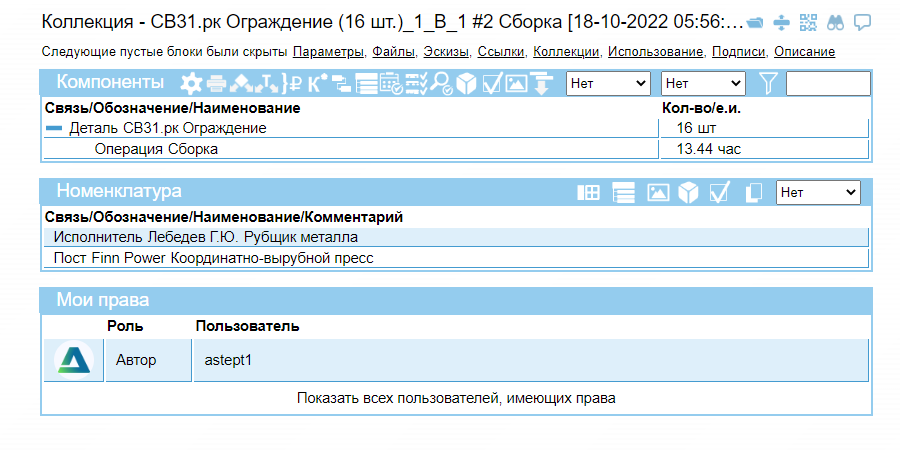 Под заголовком объекта выводится список скрытых блоков, нажав на название которого его можно отобразить. Включить режим со всеми блоками можно нажтием на кнопку