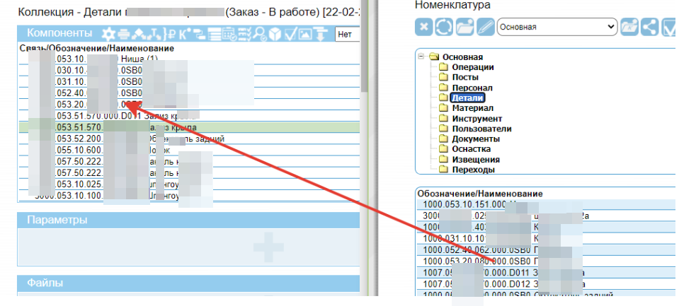 Заказ в системе - это коллекция со связью “Заказ”, и различными статусами. Перечень позиций для производства ведется в блоке “Компоненты” коллекции со связью “Заказ”. Этот перечень может быть импортирован, либо создан вручную. Для ведения компонент нужно открыть коллекцию заказа и занести в блок “Компоненты” необходимы позиции, указав их количество. Производится это перетаскиванием номенклатурных позиций из любого удобного места. Справочников, блоков компонент других коллекций, блоков номенклатуры у различных объектов системы, а также введены непосредственно с клавиатуры. Никаких ограничений на источники информации не налагается.