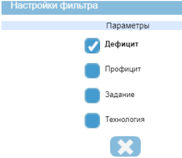 В соответствии с выбранным условием “Дефицит” будут выведены только те позиции, остаток на складе которых меньше необходимого. Эти позиции можно выделить и при помощи кнопки “Создать коллекцию по выделенным” сформировать заявку снабжению.