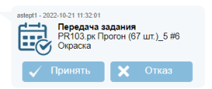 По нажтии на кнопку «Принять» задание принимается, и отметка
